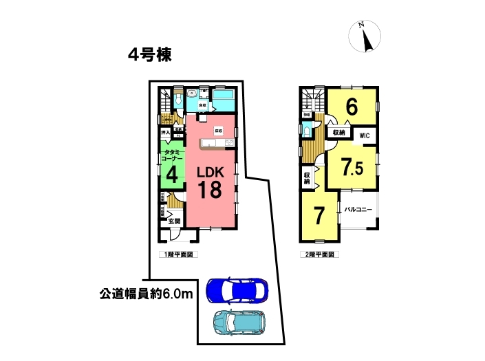 4LDKの間取り、駐車2台可能な住宅です。