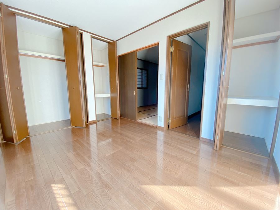 2階南側6帖:明るく、収納スペースも完備された洋室は、子供部屋としても寝室としてもお使いいただけます◎