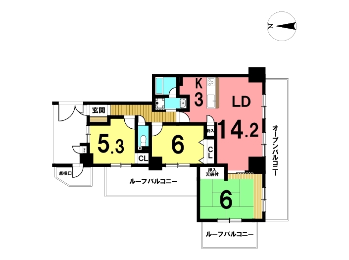 ■南向きオープンバルコニー+西側2面ルーフバルコニー■