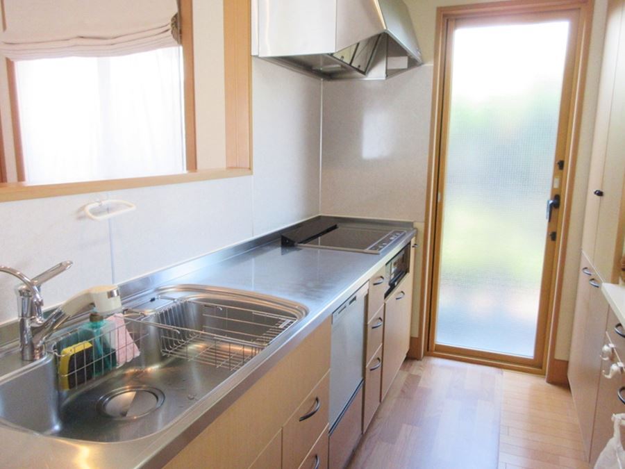 勝手口があるキッチン♪そのまま外へ出れるので、面倒なゴミ出しも楽々♪風通しも良く快適