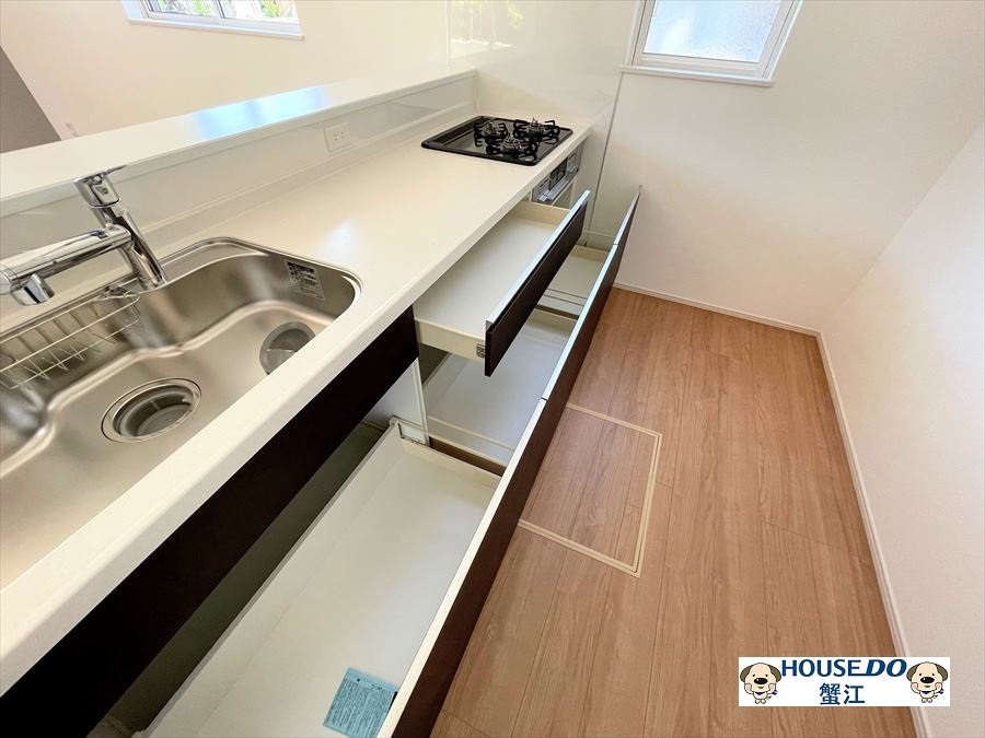 対面式キッチンから家族の笑顔を見ながら調理ができます♪床下収納があるのもポイントです◎