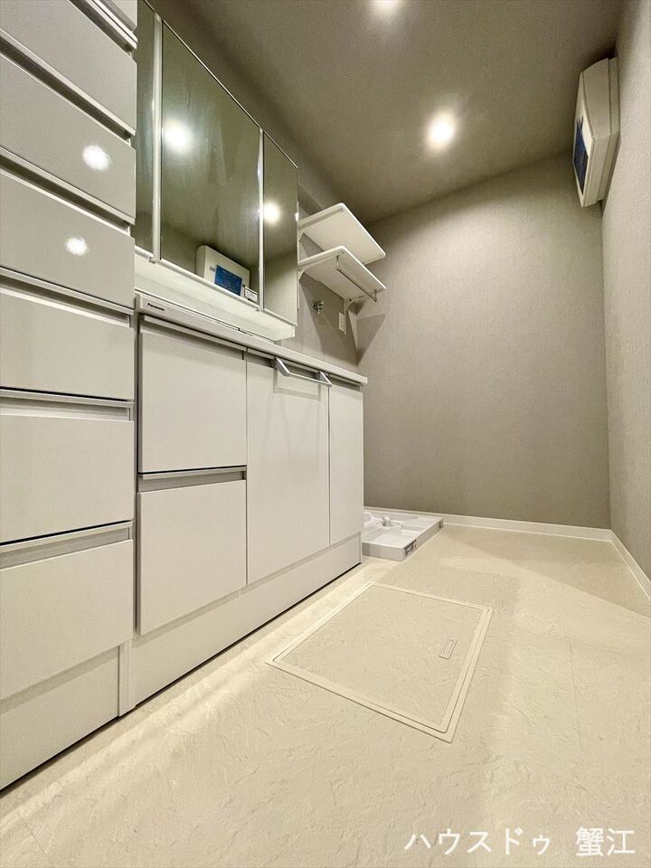 収納もあり、スッキリと見映えの良い空間にこしらえました。時間に余裕とゆとりを持たせます