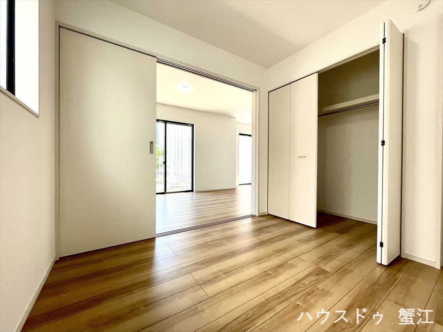 リビングと続き間になっている収納を備えた部屋。応接室としても、子供の遊び場としてもいいですね。