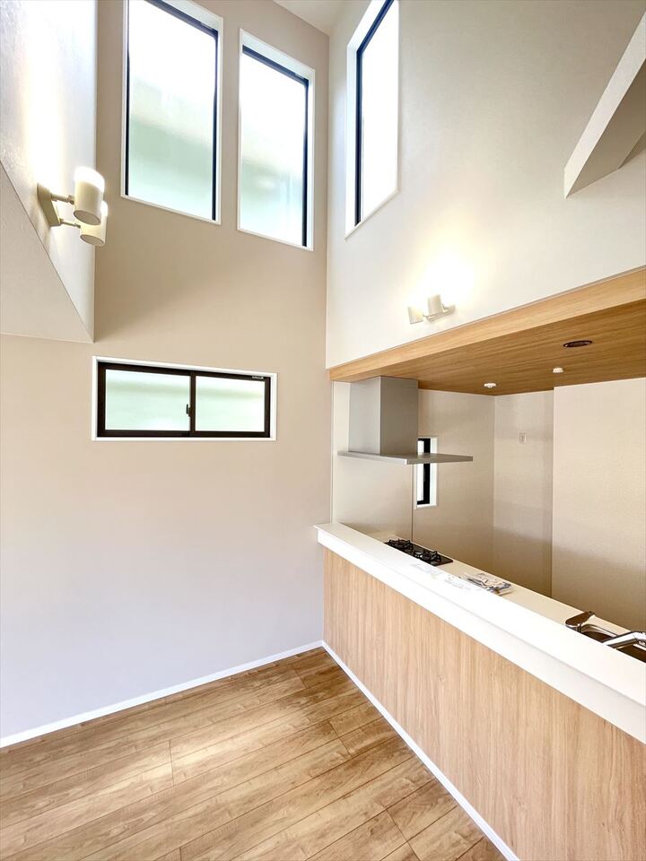 設備充実。食洗機完備のシステムキッチン。吹抜けがあることで、明るく開放的な雰囲気になっています。