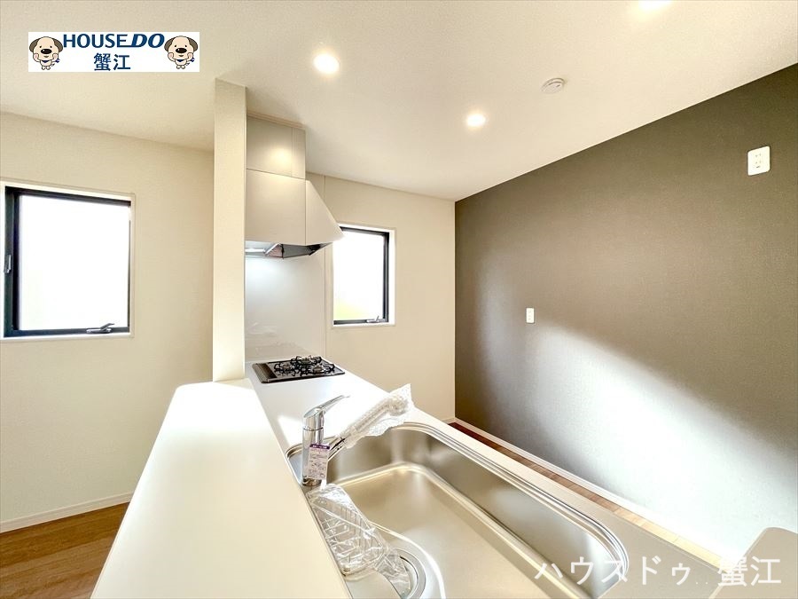 広々キッチンカンター:シンクも広く、汚れを落としやすくお手入れもラクラクです。
