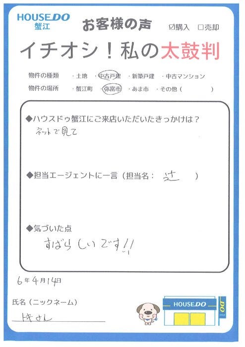 今後もハウスドゥ蟹江をよろしくお願いいたします。
