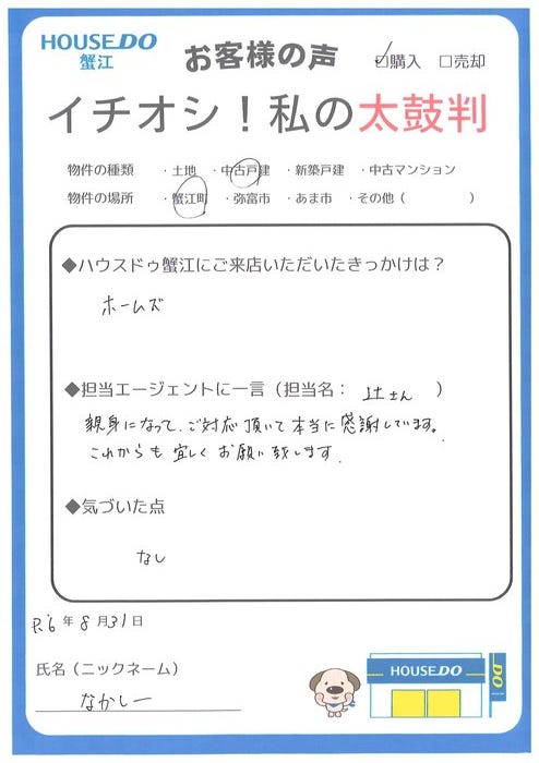 今後もハウスドゥ蟹江をよろしくお願いいたします。