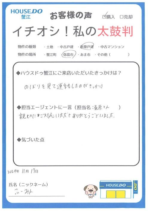 今後もハウスドゥ蟹江をよろしくお願いいたします。