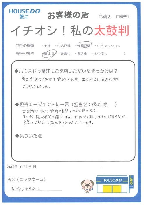 今後もハウスドゥ蟹江をよろしくお願いいたします。